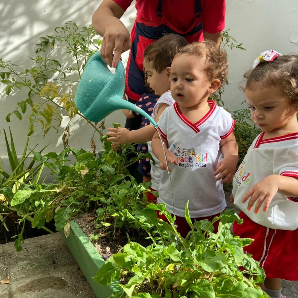 O Space Kids ensina a seus alunos a cuida e cultivar a horta da escola. A escola ensina cidadania desde de pequenos.