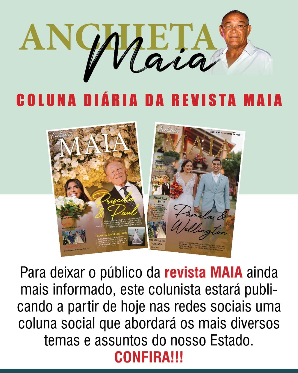 Para deixa o público da revista MAIA ainda mais informado, este colunista estará publicando a partir de hoje nas redes sociais uma coluna social que abordará os mais diversos temas e assuntos do nosso Estado, fica de olho aqui no portal que vem muita novidade.