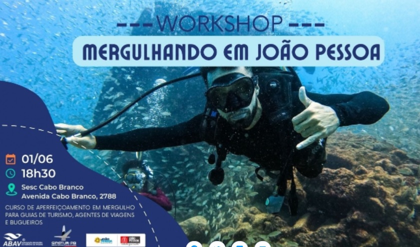 A Prefeitura de João Pessoa, por meio da Secretaria de Turismo (Setur), vai realizar, na próxima semana, o workshop técnico ‘Mergulhando em João Pessoa’, destinado a capacitar tecnicamente os guias de Turismo, agentes de viagens e bugueiros sobre o potencial náutico e de mergulho existente na costa da capital. O evento é gratuito e as inscrições estão sendo feitas pelo link: https://www.sympla.com.br/workshop-mergulhando-em-joao-pessoa__1586898 .