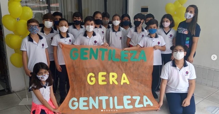 Encerrando a semana da Gentileza, as turminhas dos 4º anos realizaram uma ação na portaria, recepcionando pais e alunos com palavras de gentileza.