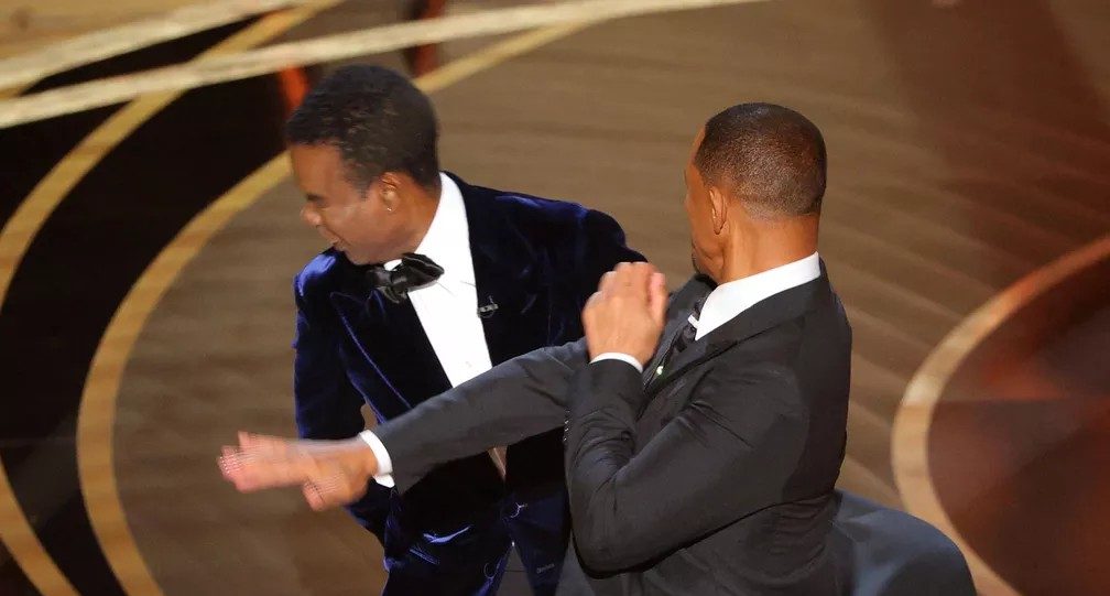 “Vai ter o G.I. Jane 2”, disse Chris, falando o nome do filme em inglês. Will, que ainda não tinha levado o prêmio de Melhor Ator por King Richard: Criando Campeãs, correu para o palco, deu o tapa em Chris, voltou para a plateia e então gritou duas vezes a plenos pulmões de seu lugar da plateia: “Mantenha o nome da minha esposa fora da p* da sua boca”. O humorista ficou sem reação e Lupita Nyong’o, que estava sentada ao lado de Will, apareceu assustada.